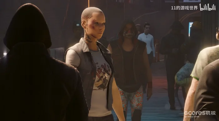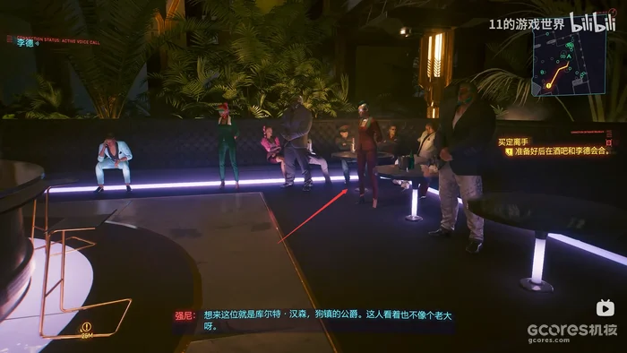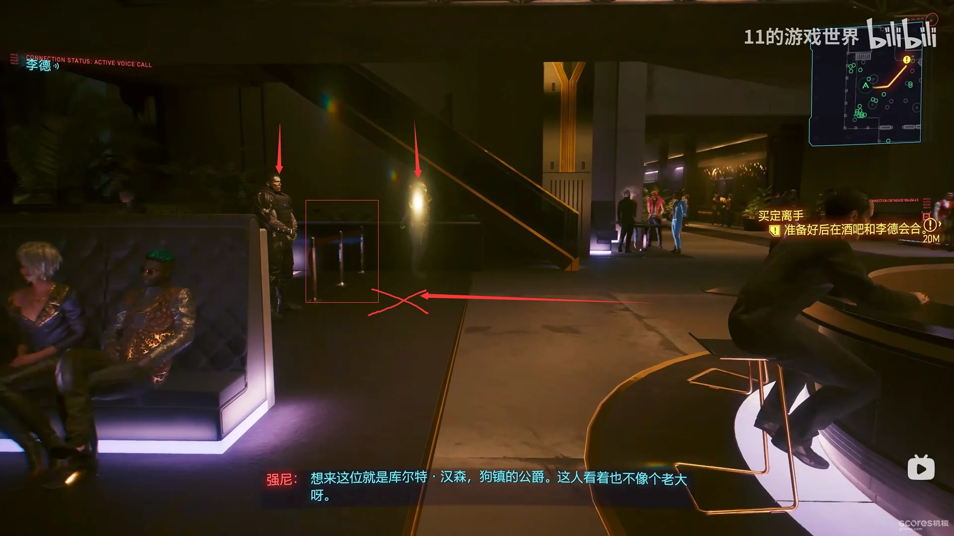 场景内的名流有一种非常明显的“阶级差异”——设定上危险程度较低的名流,你靠近时会触发对话,有时玩家可能会和NPC产生行为交互;设定上属于帮派势力/黑道等危险势力的角色,他朝向玩家移动进来的方向永远会存在保安进行遮蔽。尽管玩家依然可以靠近听到对话,但NPC仿佛完全不知晓玩家存在一般,无视玩家继续对话。