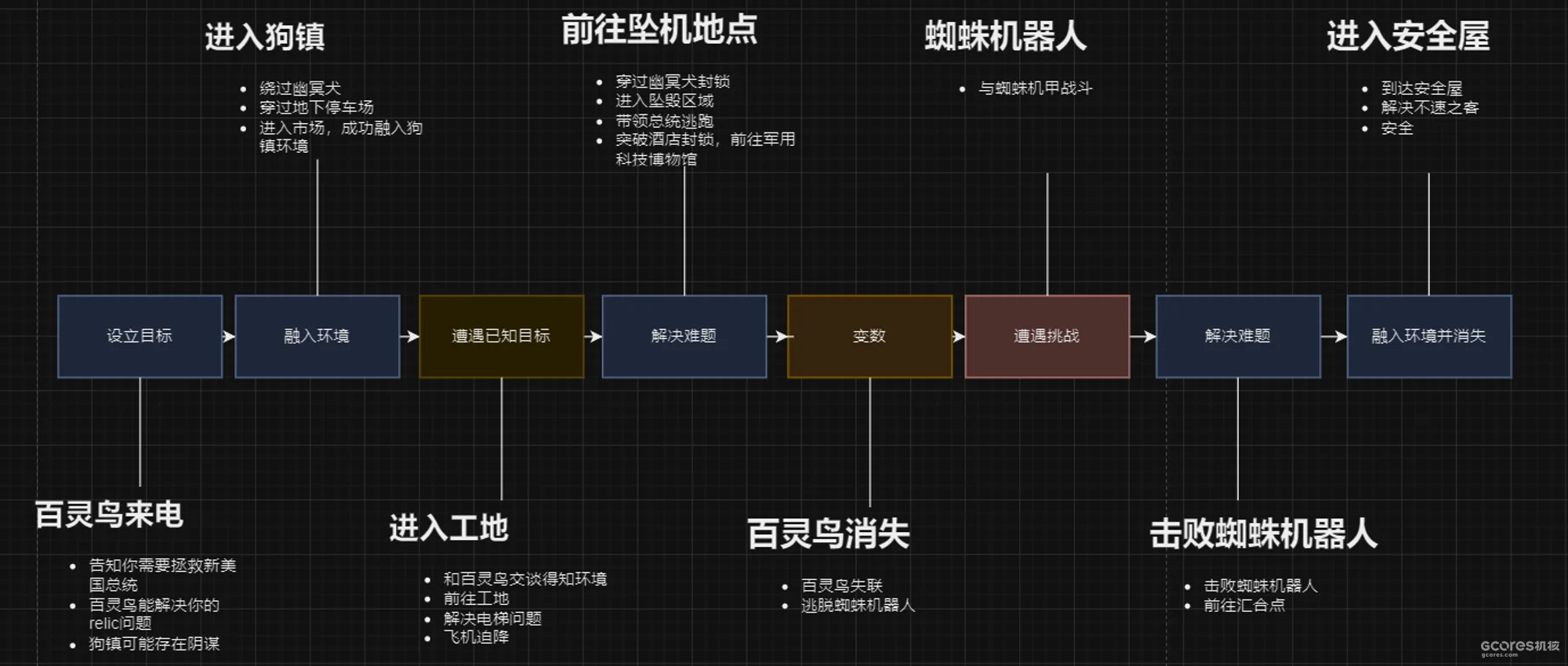 如果我们回头整理玩家进入狗镇的流程,你会发现,他的结构其实非常接近一个被“拉长”的谍战电影桥段
